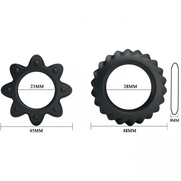 Выполнены кольца из медицинского силикона в черном цвете. Гипоаллергенные! Не имеют швов, стыков, посторонних запахов. По тактильным ощущениям барахатистые. Не пережимают, не передавливают половой член. Идеально расстягиваются на любой диаметр