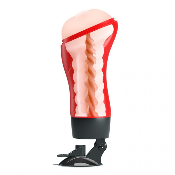Мастур­ба­тор помещен в тубус, выпол­нен­ный из ABS-​пластика в крас­ном цвете. В осно­ва­нии тубуса име­ется мощ­ная при­соска, кото­рая поз­во­ляет его крепить к любой ров­ной поверх­но­сти! Но это еще не все! Спе­ци­аль­ное коле­сико поз­во­лит отрегу­ли­ро­вать угол наклона, что даст возмож­ность стиму­ли­ро­вать поло­вой член под каж­дым углом, ими­ти­руя раз­лич­ные позиции! При­соска съемная!