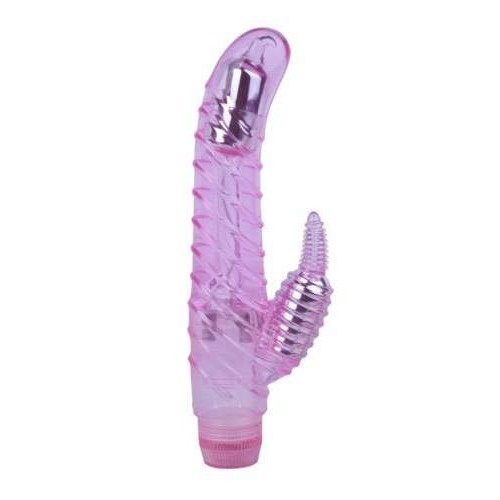 Вибратор с клиторальным стимулятором "Curve Seduction" рельефный, розовый