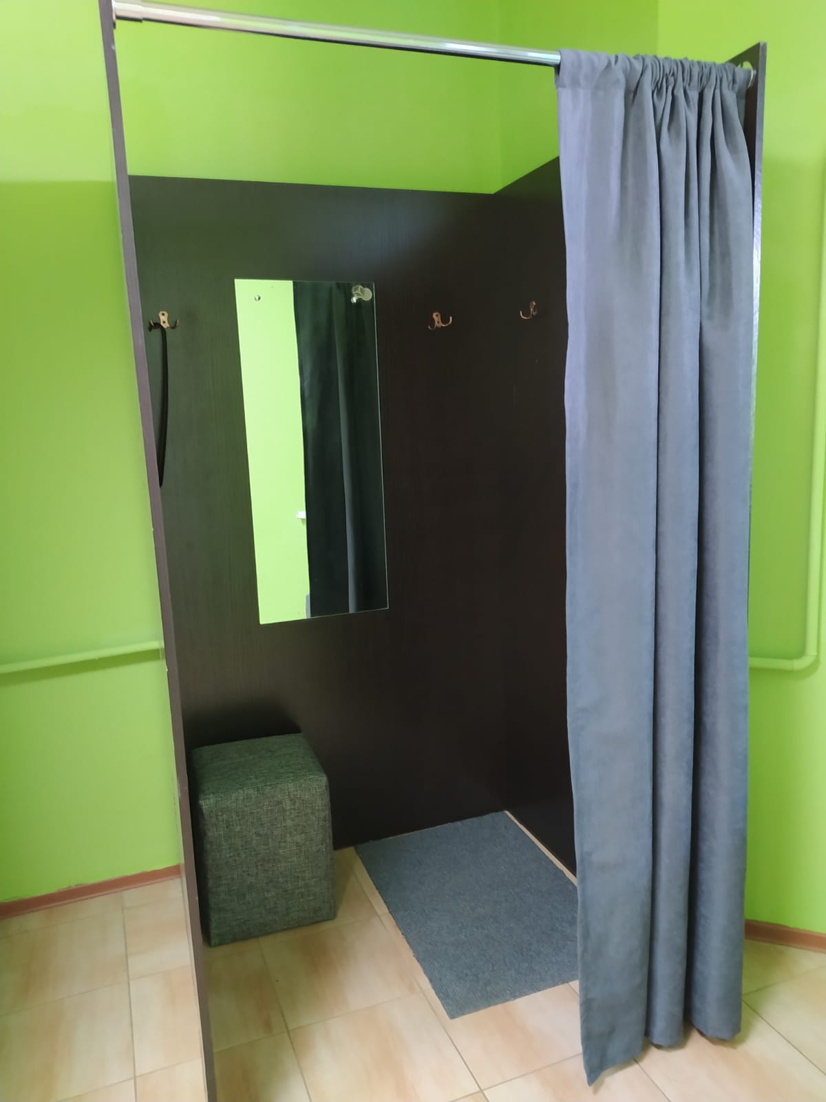 Войти в магазин Победа через центральный вход, на 1 этаже около входа расположен постамат.