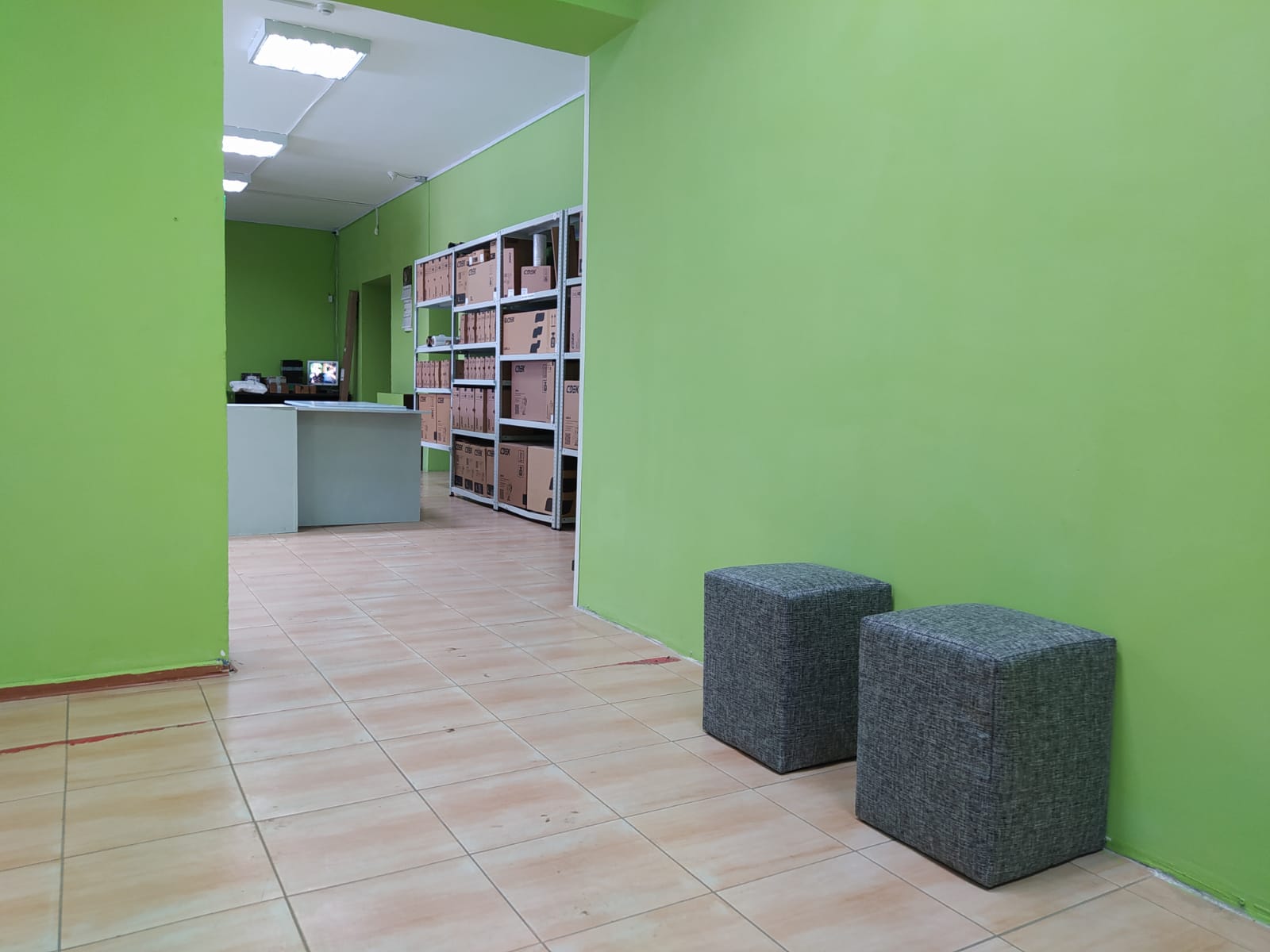 Войти в отделение банка Совкомбанк через центральный вход, на 1 этаже расположен постамат.